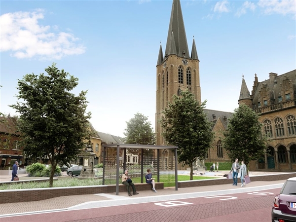 Er werd een microsimulatie uitgevoerd door Sweco zodat de concrete wisselwerking over de 2 kruispunten kan bepaald worden en de verkeersstromen tijdens de ochtend- en avondspits gevisualiseerd kunnen weergegeven worden in de verschillende scenario's. De studie geeft aan dat verkeerlichten niet wenselijk zijn omdat zij veel file zullen veroorzaken en dat de rijrichting achter de kerk bij voorkeur wordt omgekeerd - t.o.v. de huidige situatie - in het nieuwe ontwerp. Dit in kader van de veiligheid van het plein en de verkeersafwikkeling ervan.
